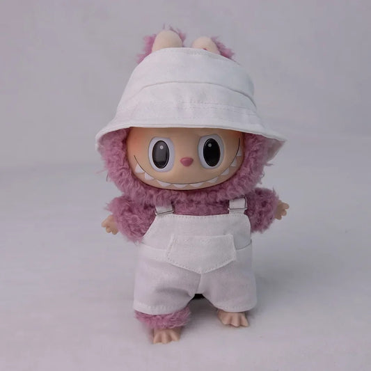 17cm Labubu Doll Bucket Hat Overalls Set Doll Clothes Ropa Labubu Clothes Accessories