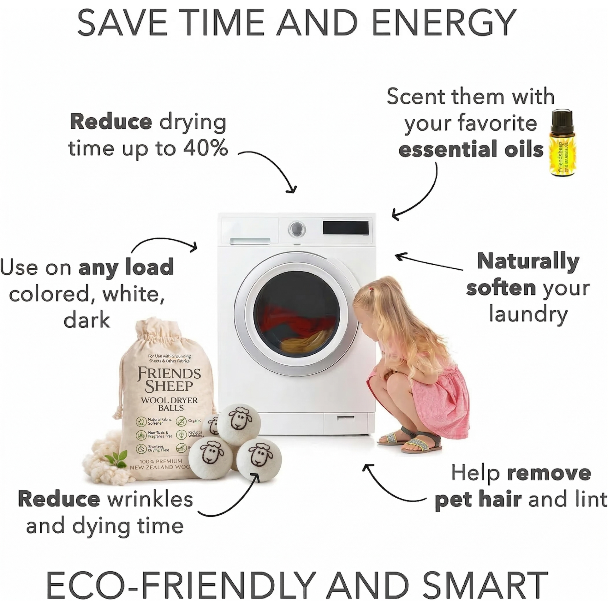 By tumbling softly with your laundry and improving airflow, they help clothes dry up to 40% faster, saving you time and energy, while keeping fabrics naturally soft, static-free, and wrinkle-free.